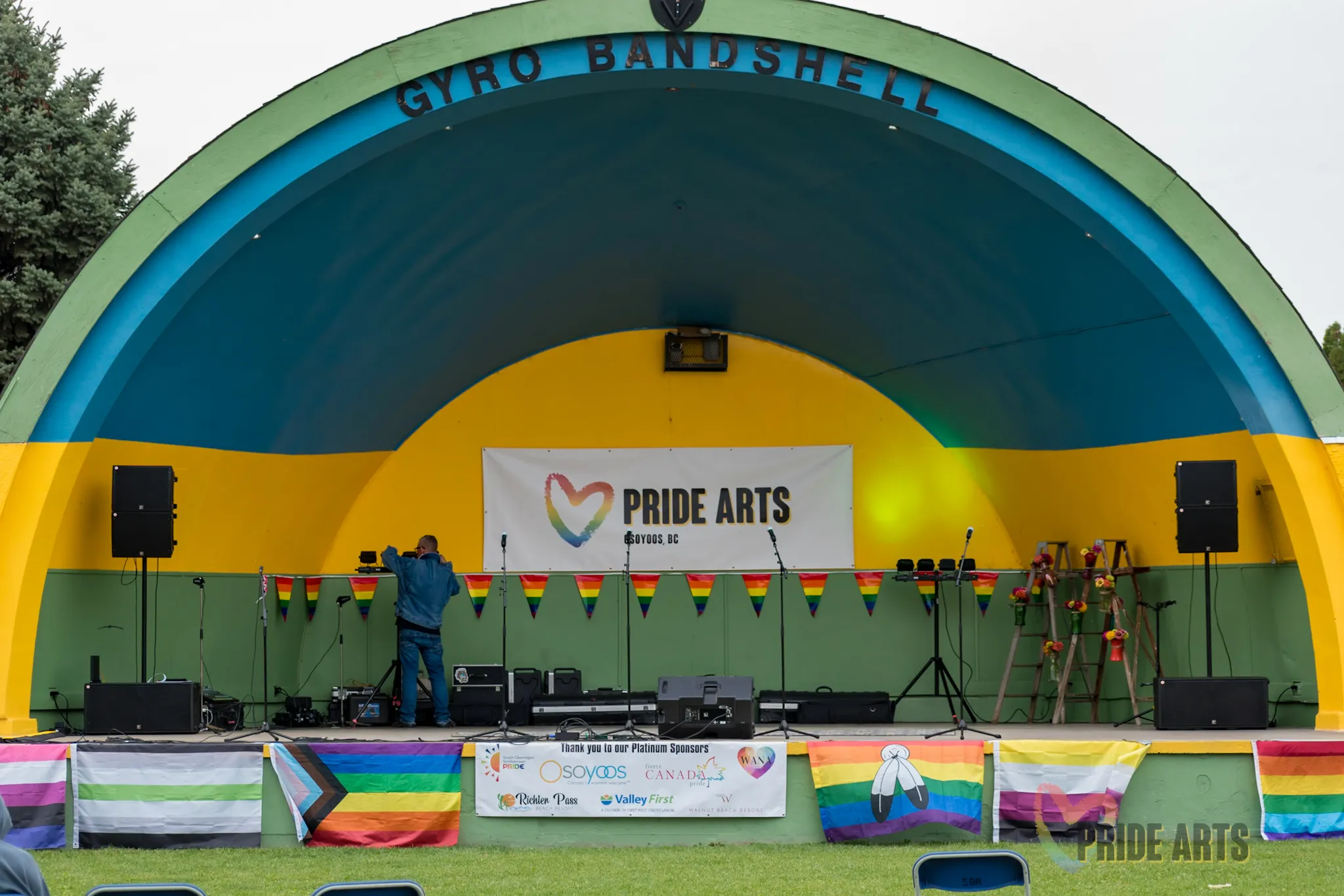 We acknowledge that the Pride Arts Festival takes place on the stolen, traditional ancestral territory of the Syilx/Okanagan Nation. Syilx Okanagan People have lived, gathered, occupied, traded, built sustainable economies and responsibly managed this territory since the beginning of people on this land. The Pride Arts Festival is hosted in what is now known as Osoyoos, derived from the word sw̓iw̓s (pronounced "soo-yoos") meaning "narrowing of the waters" in the local Okanagan/Nsyilxcən (n̓səl̓xcin̓, n̓syilxčn̓) language. sw̓iw̓s (Osoyoos) is within the Osoyoos Indian Band’s area of leadership and business responsibility that extends from the South Okanagan into the Boundary and Kootenay regions.